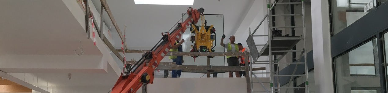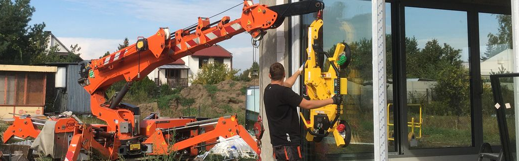 Mini żurawie wynajem na całej Polsce. Wynajem do prac szklarskich, dekarskich, budowlanych. Dodatkowym wyposażeniem mini żurawi podczas szklenia są próżniowe ssawki.
