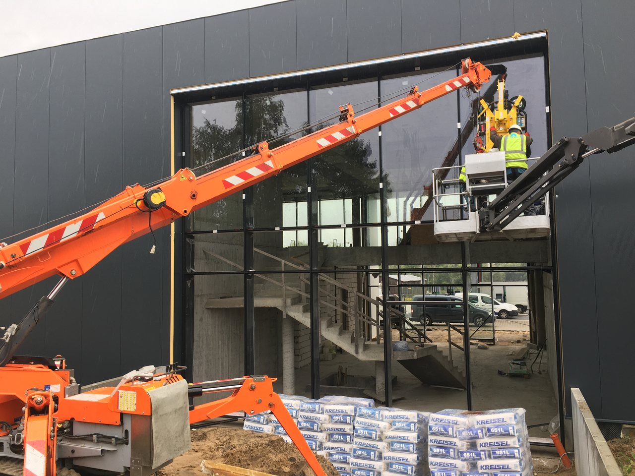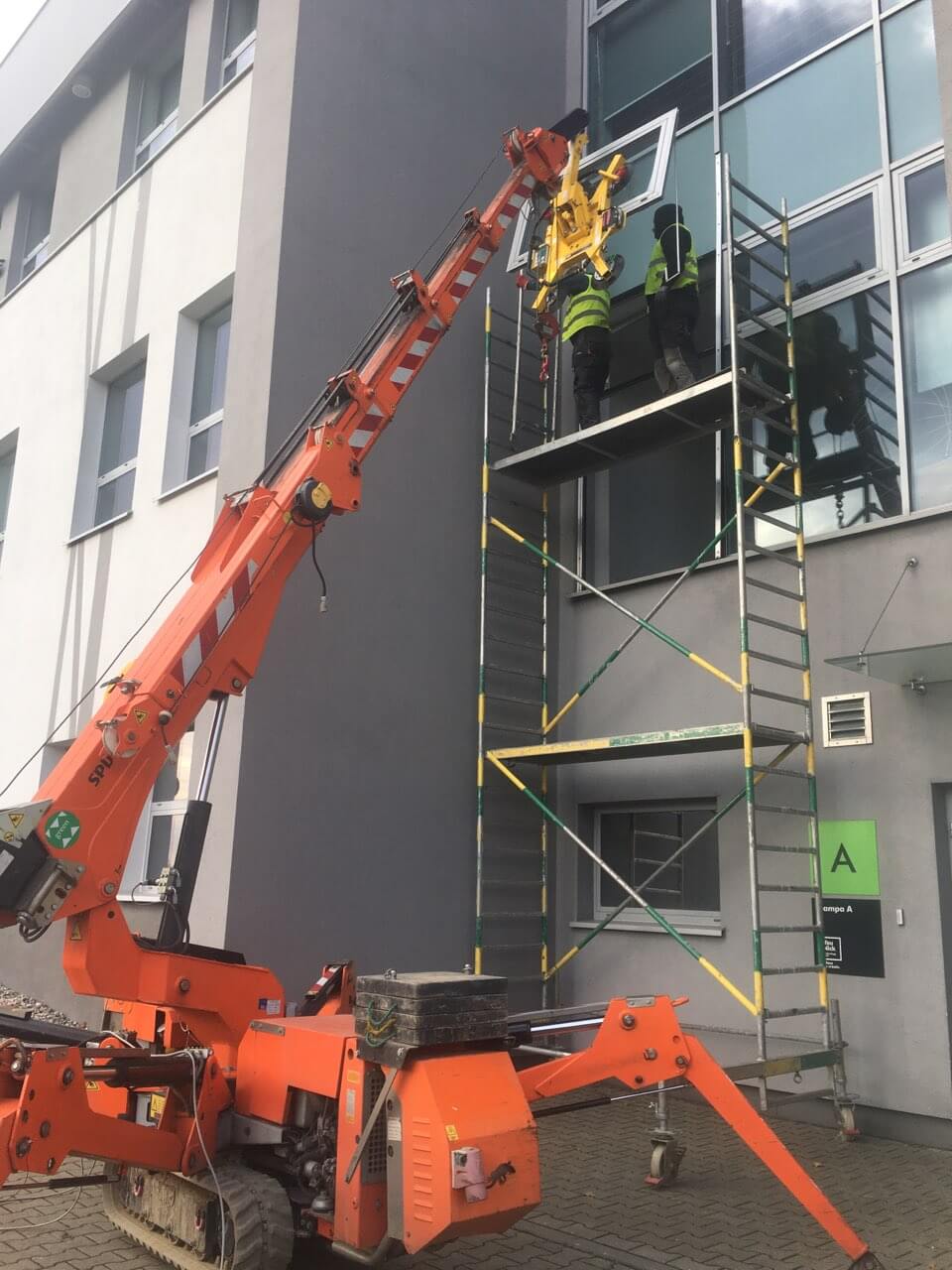 Oferujemy usługi mini żurawiem: montaż tafli szklanych ( fasady, dachy szklane, szyby wieloformatowe)