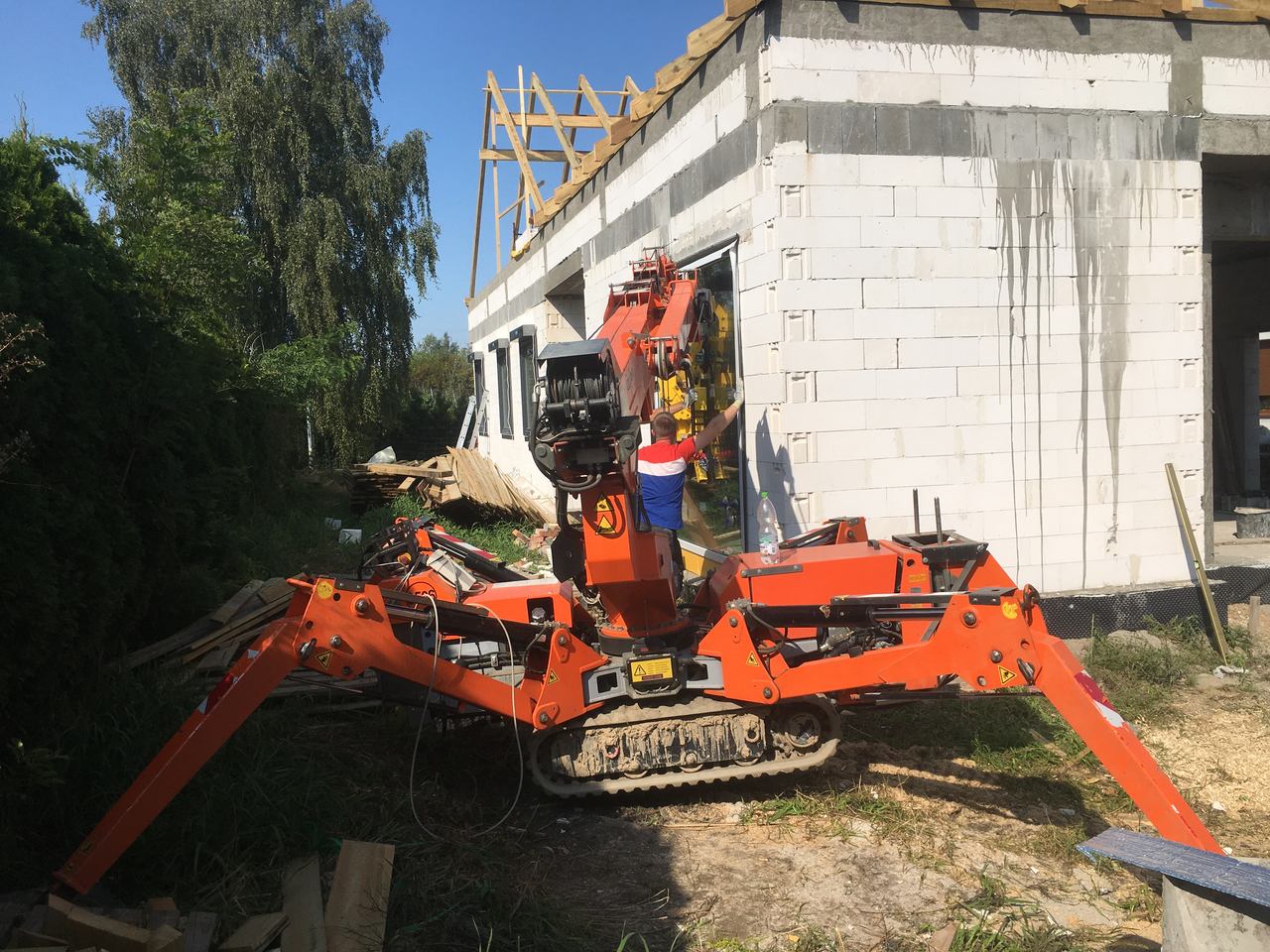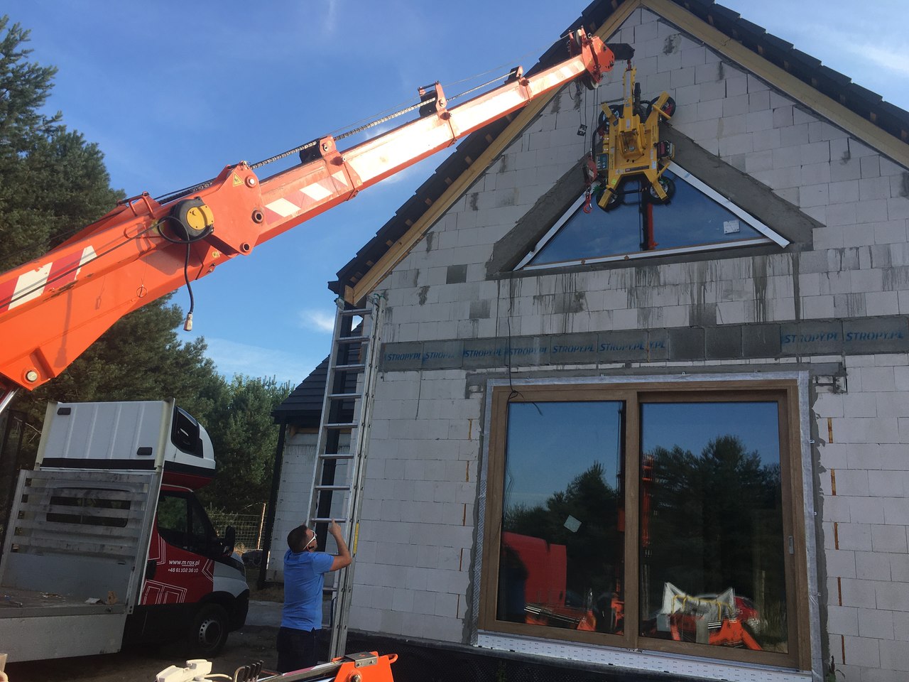 Montaż okien i prace szklarskie mini żurawiem