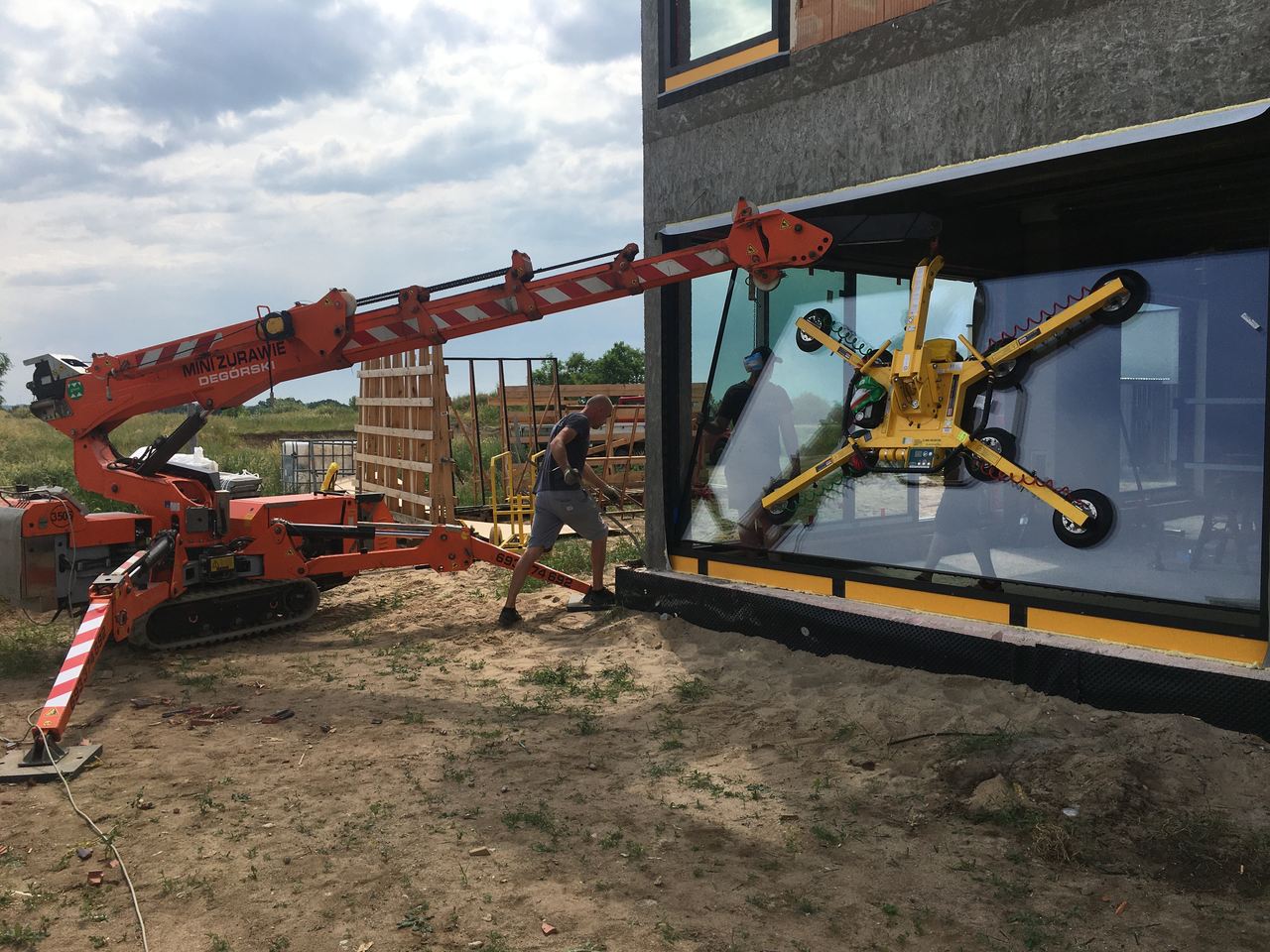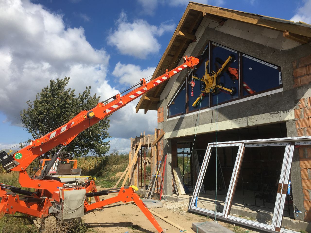 Użycie mini żurawia przy montażu okien szyb wieloformatowych ułatwi i przyspieszy Wam pracę. Ta nowoczesna maszyna zastępuje kilku ludzi i duży dźwig. Ponadto, mini żuraw zapewnia wysoką dokładność i umożliwia precyzyjne umieszczenie szyby w wyznaczonej przestrzeni.